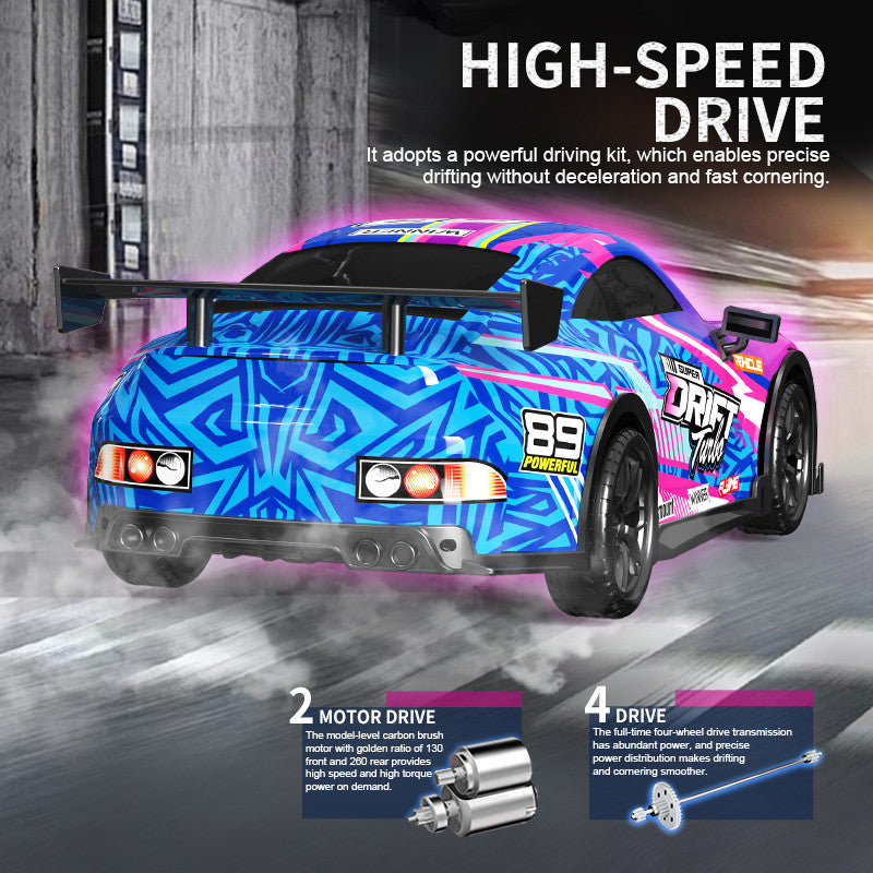 This large-size RC car offers powerful 4WD drifting, LED lights, dual speed modes, and long-lasting battery life. Perfect for indoor and outdoor racing fun