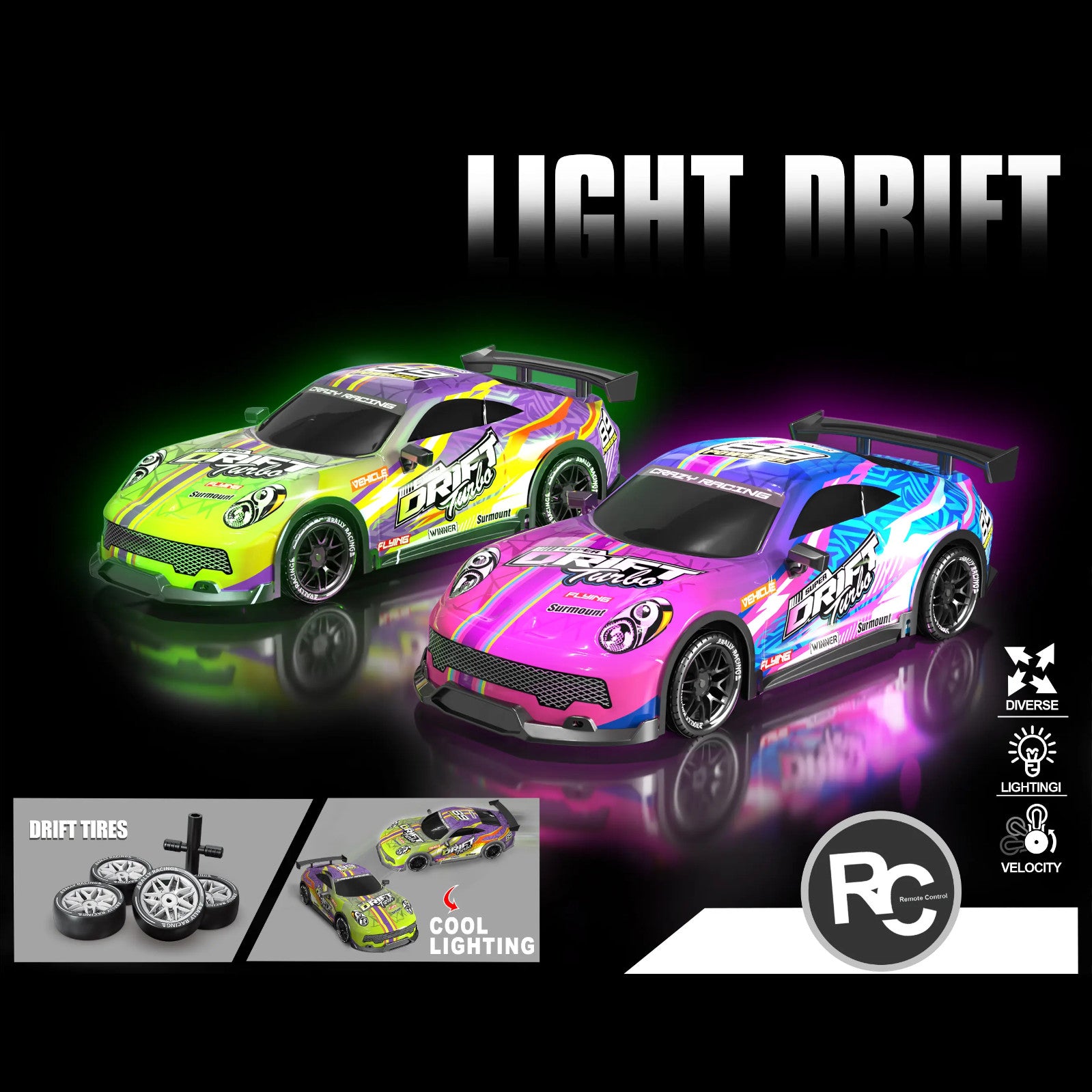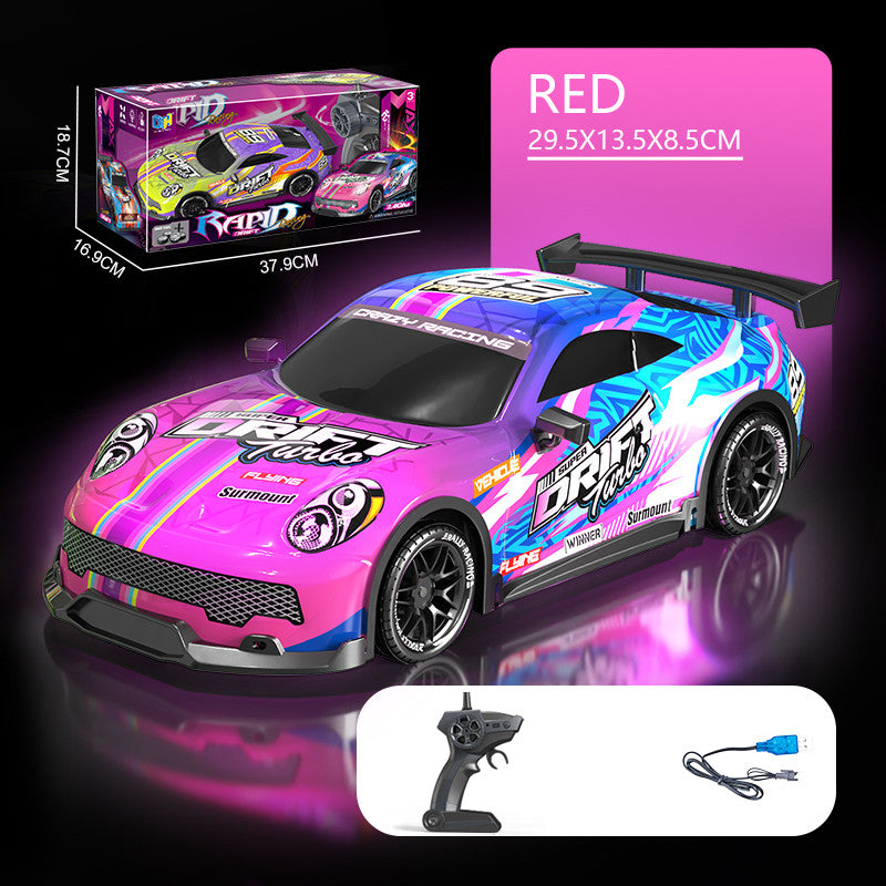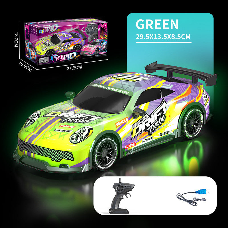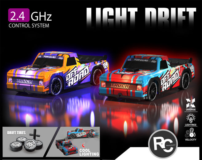 Charge the battery, insert remote batteries, and enjoy drifting with lights and speed control on any surface.