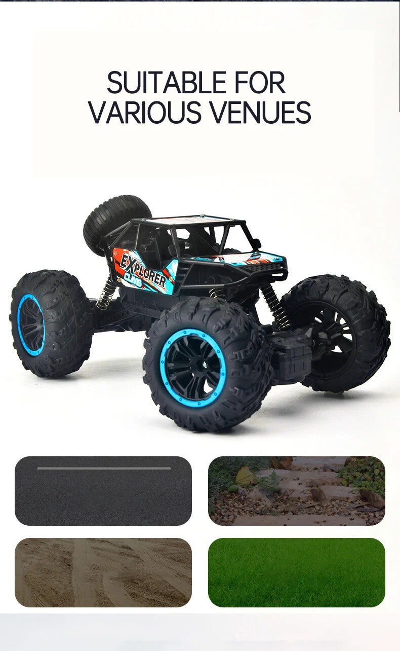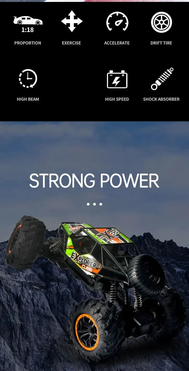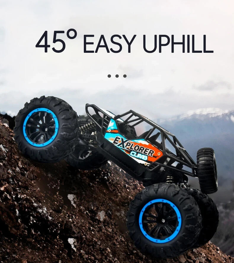 This powerful RC climbing car easily handles 45° slopes and rough terrain. With smooth controls and long-range performance, it's perfect for outdoor fun and adventure